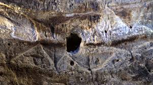 | Interior de una de las cuevas con los triángulos púbicos en la pared. |